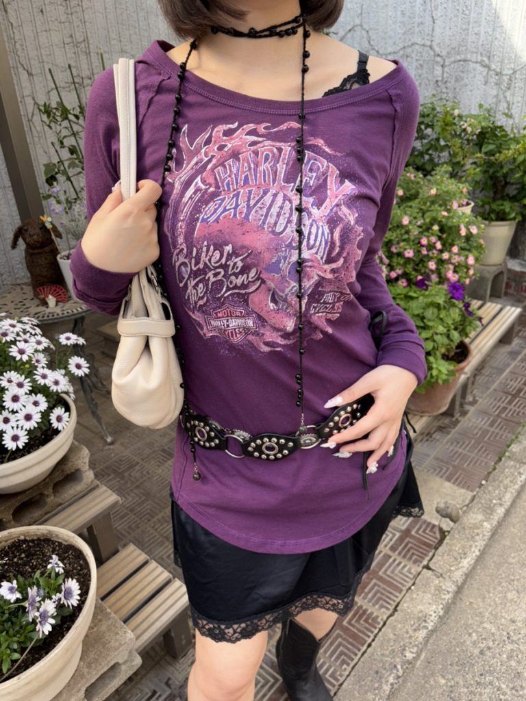 大人気Harley-davidsonのロングTシャツを使ったスタイリングです!
