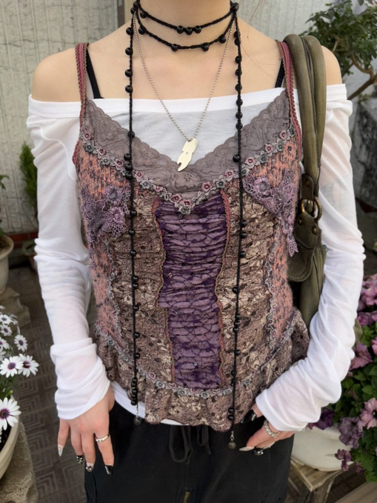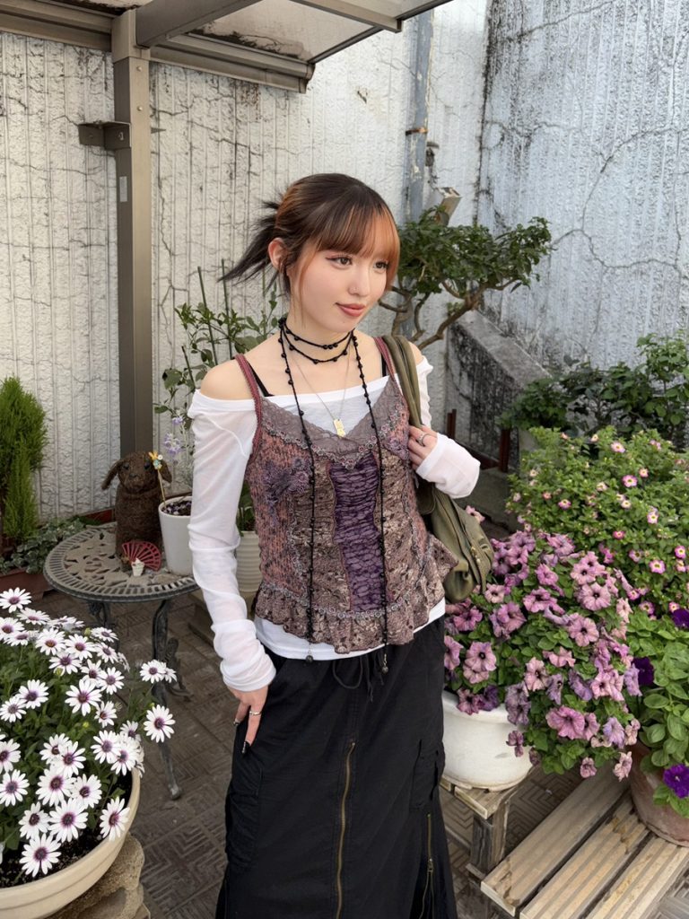 花柄のキャミソールをレイヤードすることで、シンプルなスタイリングも一気に華やかに仕上がります!