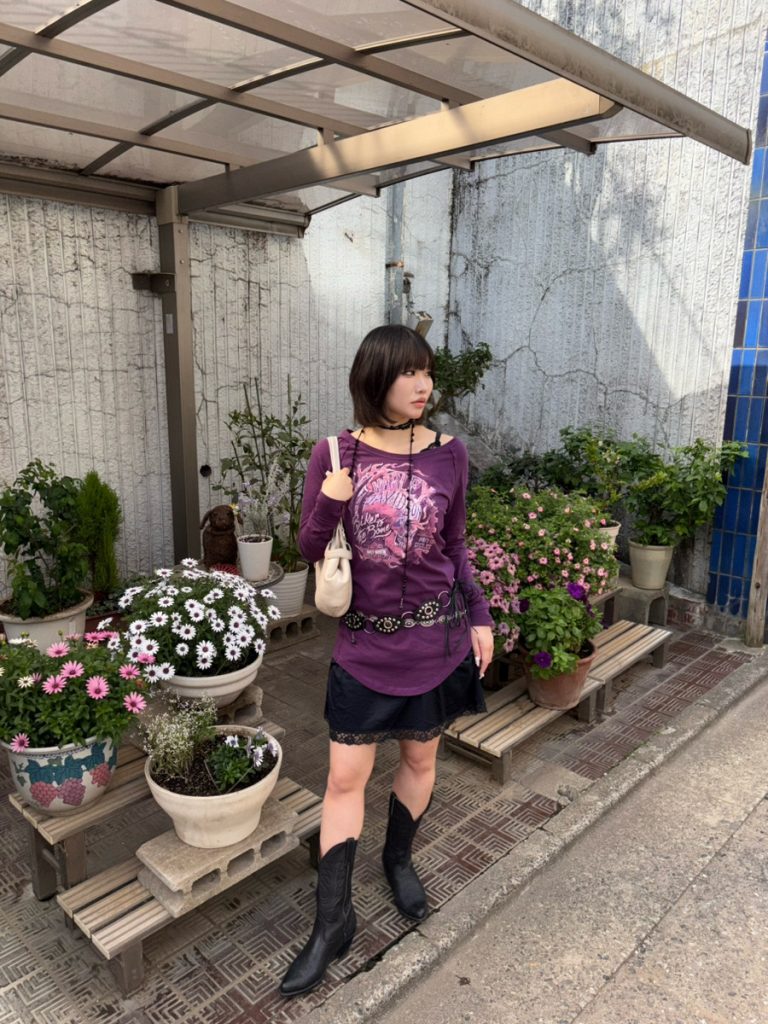 その他の小物はモノトーンで統一し、大人っぽさをプラスしたスタイリングの完成です。