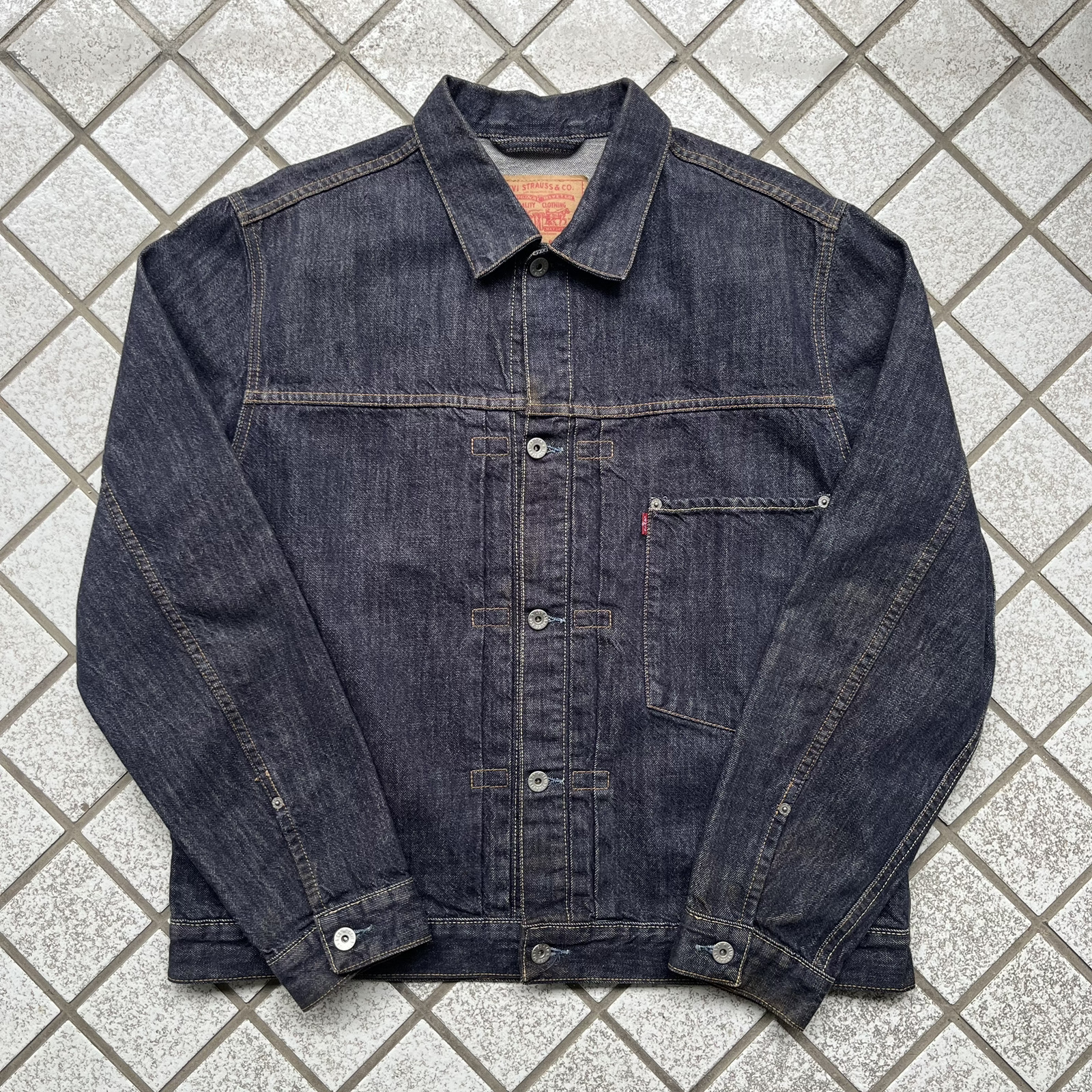 こちらは今は無き生産国チュニジアにて製造された1stタイプのデニムジャケットになります。