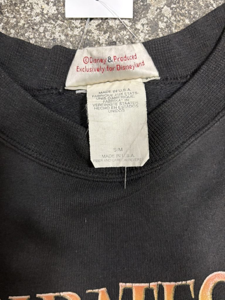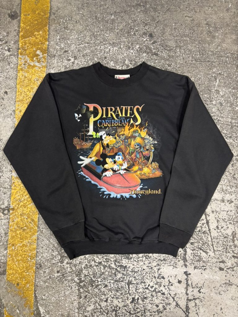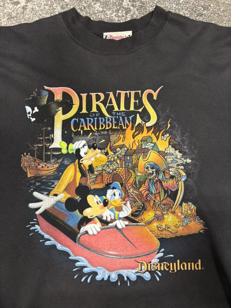 お次はディズニーランドの名物アトラクション、パイレーツオブカリビアンのプリントが入った90年代のスウェットになります。