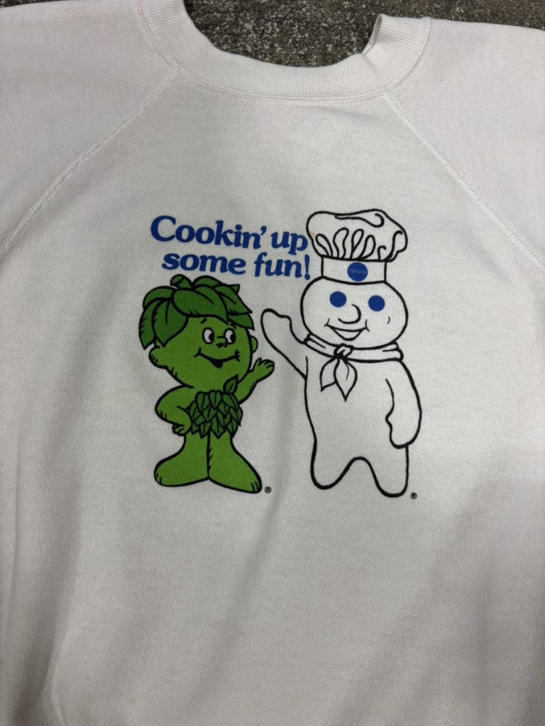 元々別の会社のキャラクターですが、1979年頃にグリーンジャイアント社がピルズベリー社と合併し傘下になったことで作られたスウェットになります。