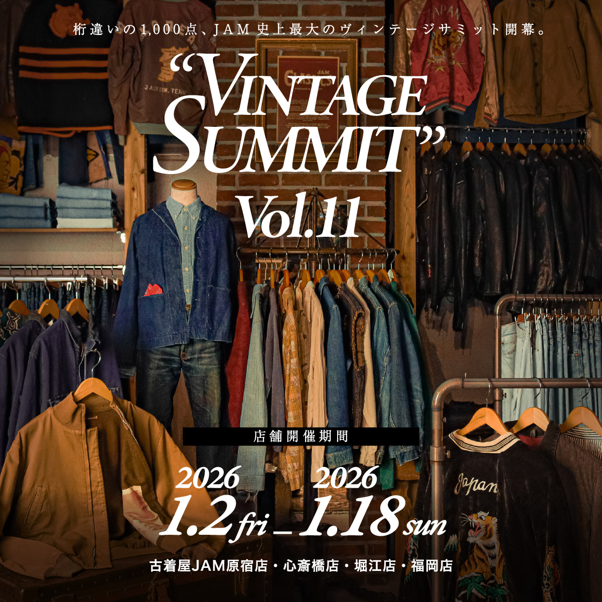 JAMが総力を挙げて世界中から集めた新規入荷ヴィンテージは、まさに桁違いの【総点数1,000点】。 JAM史上最大規模でお届けします。
