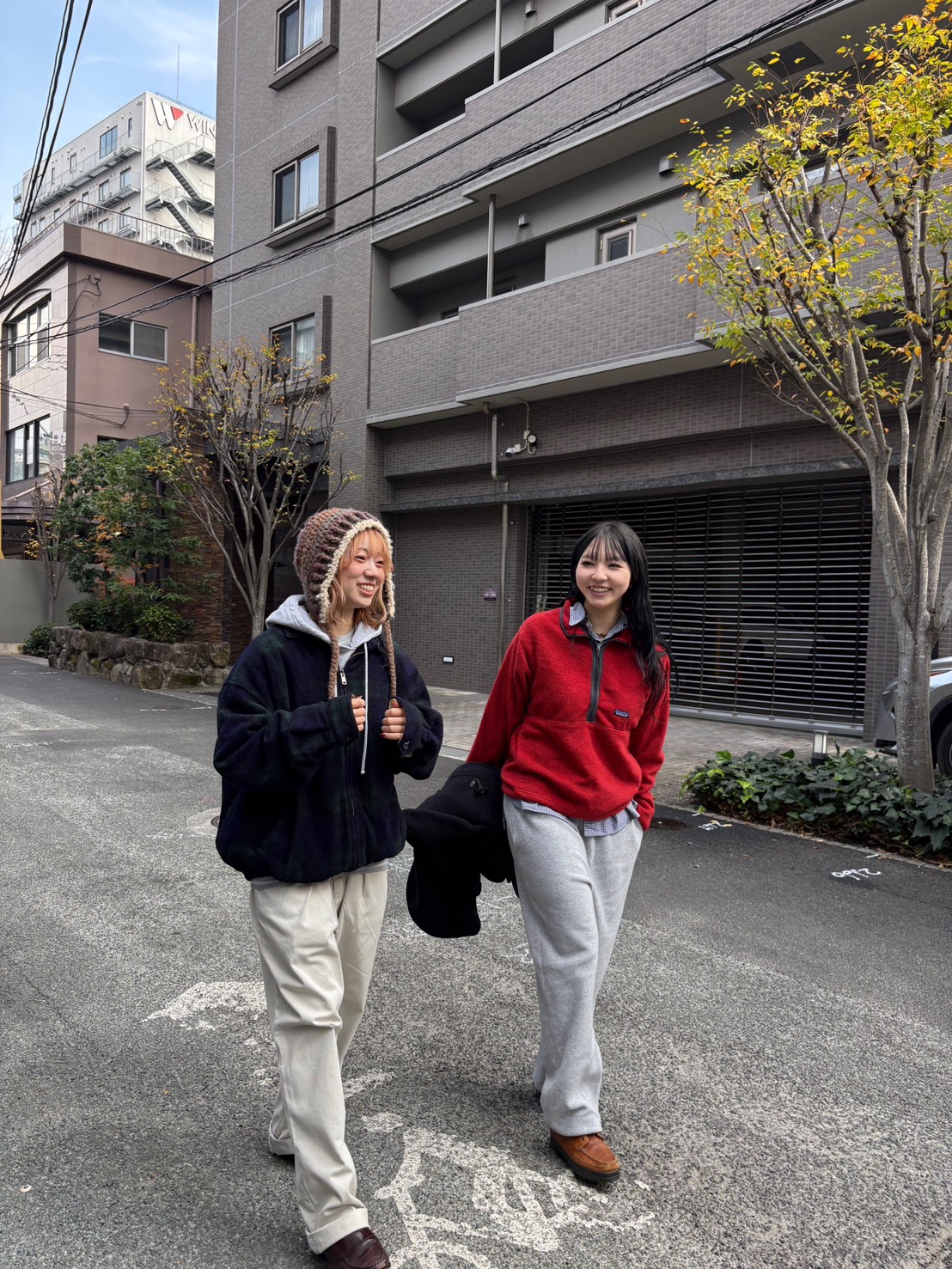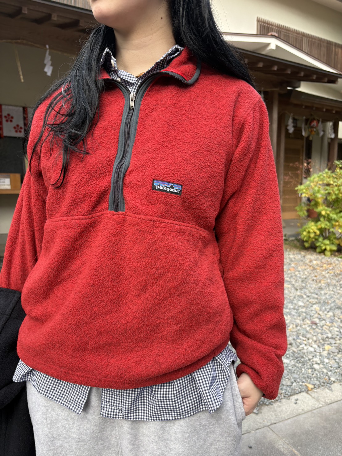 実はこの上からダッフルコートを着ているのですが、差し色として、このパタゴニアのフリースが効いてくれます。
