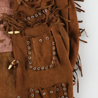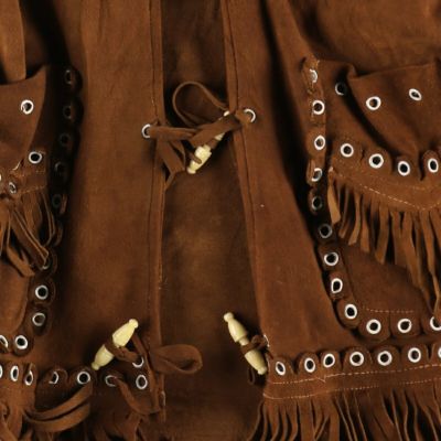 ●後、背中右側フリンジ下・裾レザー剥げ