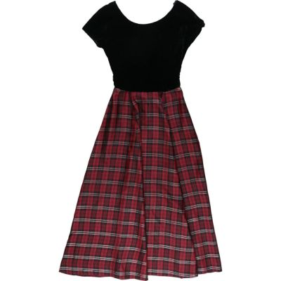 6. 古着 チェック柄 ベロア フレアワンピース レディースM相当 /eaa504176 【中古】 【241123】 【ADEL/アデル】 【SS2509_30】