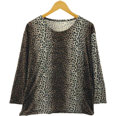 3. 古着 レオパード柄 ヒョウ柄 ベロア ロングTシャツ ロンT レディースL相当 /eaa526165 【中古】 【250310】 【ADEL/アデル】 【SS2509_30】
