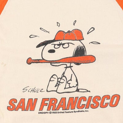 古着 70年代 アルテックス ARTEX SNOOPY スヌーピー MLB SAN FRANCISCO GIANTS サンフランシスコジャイアンツ 七分袖 キャラクタープリントロングTシャツ ロンT USA製 レディースM相当 ヴィンテージ /eaa602445 【中古】 【251206】 【ADEL/アデル】