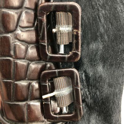 ●右足外側部、履き口・かかとに擦れ ヒールに傷 バックルに汚れ