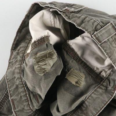 ●前、両ポケット口・両腿・左脛・両裾に擦れ、左腿・右膝に汚れ、両膝に破れ