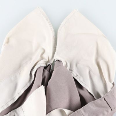 ●前、ウエスト・下腹部・左右腿・右膝・右脛・右裾・左右ポケット内袋に汚れ