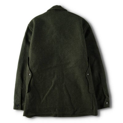 1897年創業、ゴールドラッシュの時代から過酷な環境に挑む労働者を支えてきた「FILSON(フィルソン)」。ブランドの顔とも言える名作が、1914年に特許を取得したこの「マッキーノクルーザー」です。最大の特徴は、肉厚で撥水性・保温性に富んだ最上級の「マッキーノウール」です。フロントにはコンパスや道具を収納するための機能的な4つのフラップポケットを配置。そして背面には、地図や測量図を入れるために設けられた左右貫通式の巨大な「マップポケット」を備えています。カラーは森林に溶け込む深いフォレストグリーン。使い込むほどに味わいを増す「USA製」の重厚な作りは、まさに一生モノと呼ぶにふさわしい逸品です。