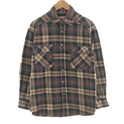 形状 長袖 フランネルチェックシャツ