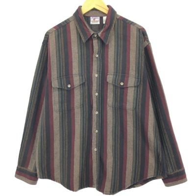6. 古着 80年代 PNENTISS ストライプ柄 長袖 ヘビーネルシャツ USA製 メンズXL相当 ヴィンテージ /evb003787 【中古】 【240820】