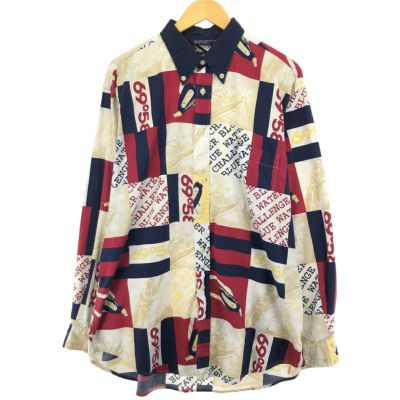 6. 古着 90年代 ノーティカ NAUTICA 総柄 長袖 ボタンダウンシャツ メンズL相当 ヴィンテージ /eaa487317 【中古】 【240909】