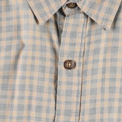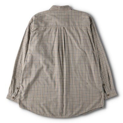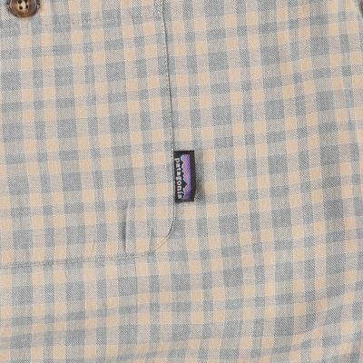 90年代Patagonia(パタゴニア)チェック柄長袖コットンシャツです。落ち着いたベージュとグレーのチェック柄で、左胸ポケットのピスネームがアクセントになり良いです◎オーガニックコットンの質の良いシャツ。このあたりもジワジワ人気が高まっているアイテムです。お早めにどうぞ。
