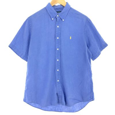 6. 古着 ラルフローレン Ralph Lauren CUSTOM FIT 半袖 リネン ボタンダウンシャツ メンズL /eaa461198 【中古】 【240624】