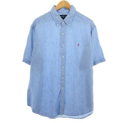 6. 古着 ラルフローレン Ralph Lauren CLASSIC FIT クラシックフィット ストライプ柄 半袖 リネン ボタンダウンシャツ メンズXL相当 /eaa465957 【中古】 【240714】