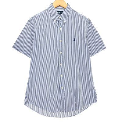 6. 古着 ラルフローレン Ralph Lauren CUSTOM FIT 半袖 ボタンダウン ストライプシャツ メンズM相当 /eaa485059 【中古】 【240903】