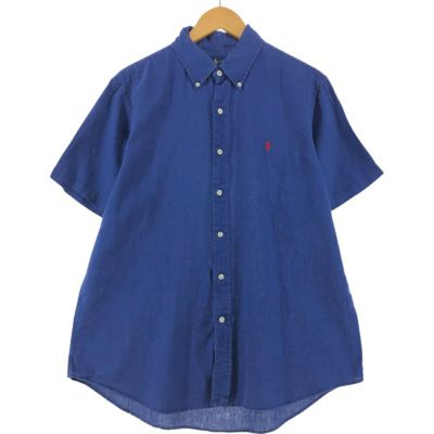 5. 古着 ラルフローレン Ralph Lauren 半袖 リネン ボタンダウンシャツ メンズL相当 /eaa531562 【中古】 【250331】
