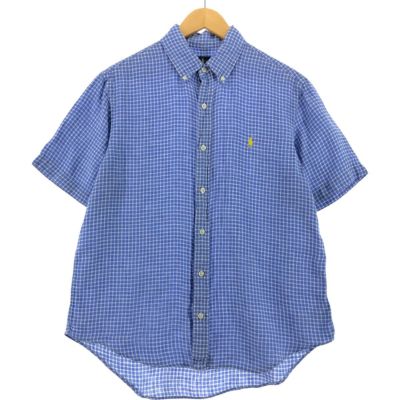 古着 ラルフローレン Ralph Lauren チェック柄 半袖 リネン ボタンダウンシャツ メンズM相当 /eaa531571 【中古】 【250331】