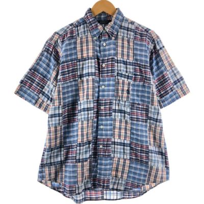 古着 90年代 ノーティカ NAUTICA パッチワーク 半袖 ボタンダウン チェックシャツ メンズM相当 ヴィンテージ /eaa534184 【中古】 【250406】