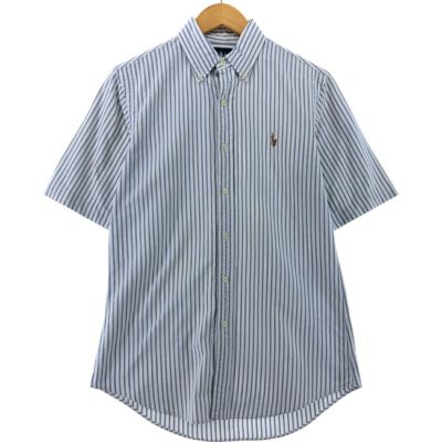5. 古着 ラルフローレン Ralph Lauren CUSTOM FIT 半袖 ボタンダウン ストライプシャツ メンズS相当 /eaa535580 【中古】 【250406】