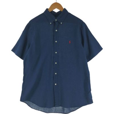 5. 古着 ラルフローレン Ralph Lauren CLASSIC FIT 半袖 リネン ボタンダウンシャツ メンズL相当 /eaa541073 【中古】 【250423】