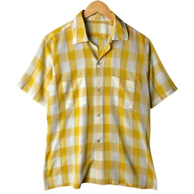 古着 70~80年代 チェック柄 半袖 オープンカラー ポリシャツ ボックスシャツ メンズM相当 ヴィンテージ /eaa580293 【中古】 【251011】
