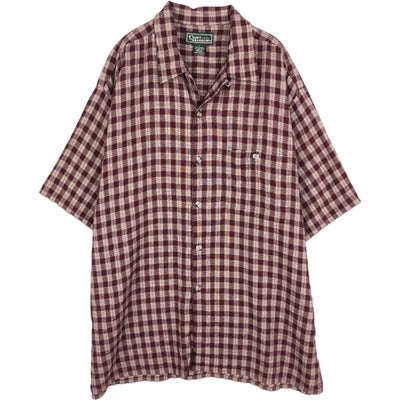 6. 古着 クラフトアンドバロー CROFT&BARROW チェック柄 半袖 オープンカラー レーヨンシャツ ボックスシャツ メンズL相当 /eaa635682 【中古】 【260414】