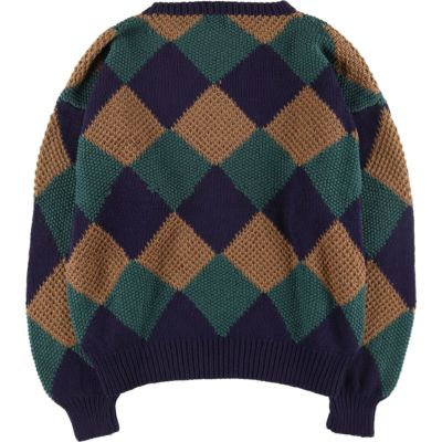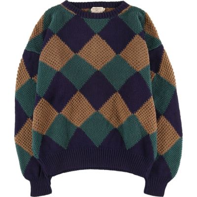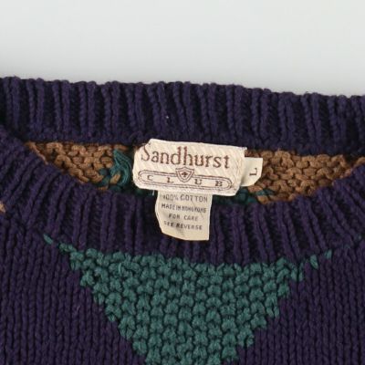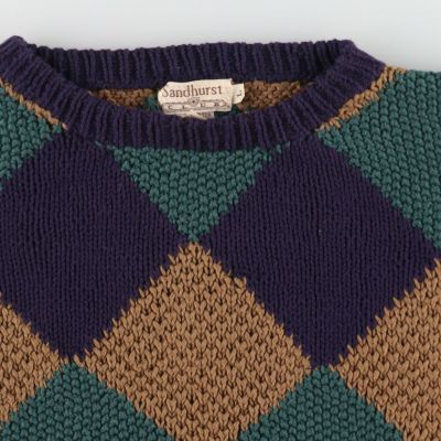 6. 古着 Sandhurst 総柄 ダイヤ柄 コットンニットセーター メンズL相当 /eaa468896 【中古】 【241007】