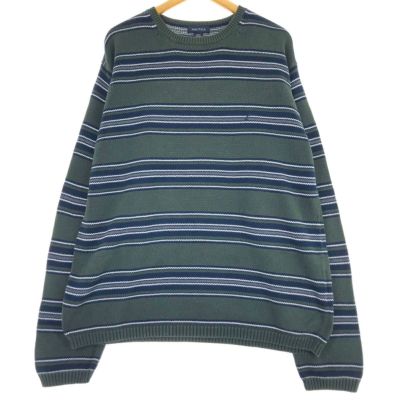 5. 古着 00年代~ ノーティカ NAUTICA ボーダー柄 コットンニットセーター メンズXL相当 /eaa472927 【中古】 【241012】