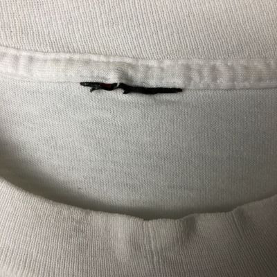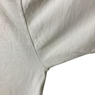 ●前、襟ぐり・左袖ぐり・右脇・右袖・胸に汚れ プリント剥げ