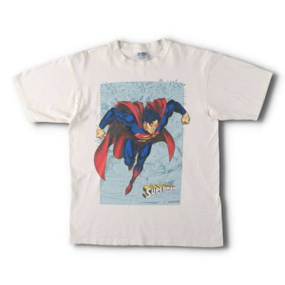 90年代 SUPERMAN キャラクタープリントTシャツです。90年代はアメコミ人気が高まり、90年代のタッチがカッコいいスーパーマンのグラフィック。スーパーマンの中でも良いグラフィックかと思います。アメコミTシャツをお探しの方に是非。