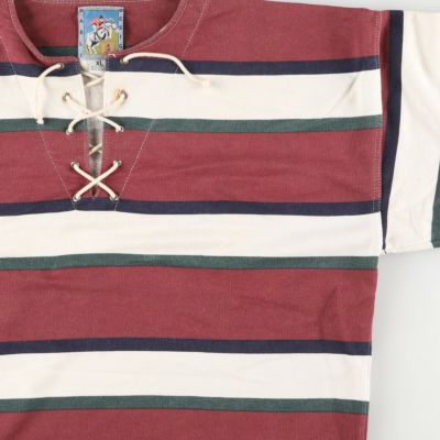 6. 古着 DARLI DESIGN ボーダー柄 レースアップ ロングTシャツ ロンT メンズXL /eaa440808 【中古】 【240625】 【SS2509_30】