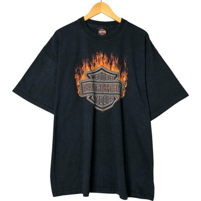 6. 古着 ハーレーダビッドソン Harley-Davidson ファイヤーパターン モーターサイクル バイクTシャツ USA製 メンズXXL相当 /eaa558257 【中古】 【250615】