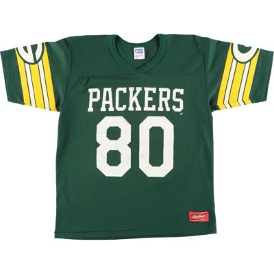6. 古着 80~90年代 RAWLINGS NFL GREEN BAY PACKERS グリーンベイパッカーズ 両面プリント Vネック フットボールTシャツ USA製 メンズS ヴィンテージ /eaa425397 【中古】 【240322】 ss2503_30