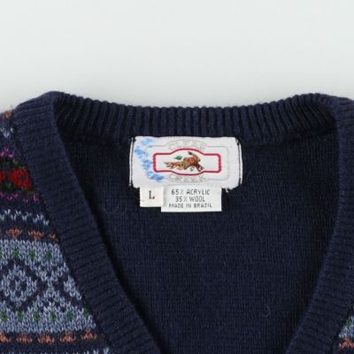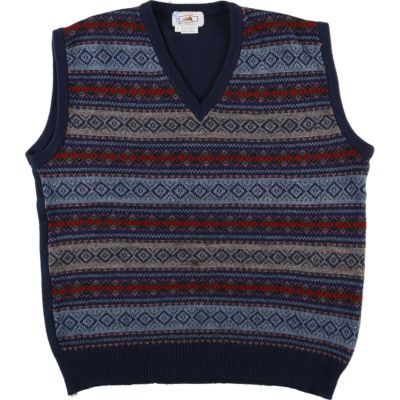 6. 古着 CLEAR CREEK フェアアイル柄 Vネック アクリルニットベスト メンズL /eaa365652 【中古】 【231202】