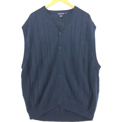 古着 90年代 ノーティカ NAUTICA ケーブル編み Vネック 前開き コットンニットベスト メンズXL相当 /eaa501714 【中古】 【250504】 【SS2509_30】