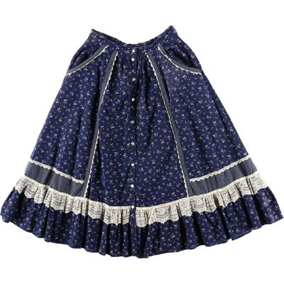 古着 70年代 ガンネサックス GUNNE SAX GUNNIES ガニーズ 総柄 花柄 ドット柄 前開き コットン ハーフ丈 フレアスカート USA製 レディースS相当 ヴィンテージ /eaa604836 【中古】 【260111】 【Elulu/エルル】