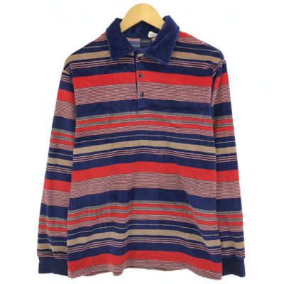 5. 古着 80年代 ジェイシーペニー J.C.Penney マルチボーダー ベロア 長袖 ボーダー ポロシャツ メンズL相当 ヴィンテージ /eaa487415 【中古】 【240908】
