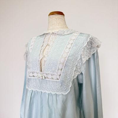 5. 古着 クリスチャンディオール Christian Dior LINGERIE フリルレース マキシ丈 長袖 ロングワンピース ネグリジェ レディースS相当 /eaa514624 【中古】 【250212】 【V2502】