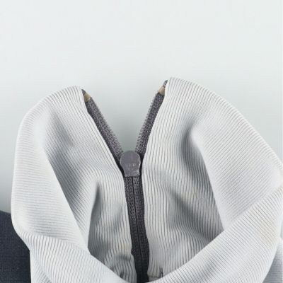 ●前、首周りに汚れ、右袖先ステッチほつれ、ジップトップ裏欠け ●後、首リブ・右袖ぐりに汚れ ●裏、首リブ・胸部・裾上・右袖先に汚れ