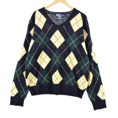 5. ラルフローレン Ralph Lauren POLO by Ralph Lauren アーガイル柄 Vネック アンゴララビットヘア混 メリノウールニットセーター メンズL /eaa096342 【201108】
