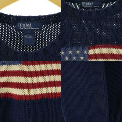 5. 90年代 ラルフローレン Ralph Lauren POLO by Ralph Lauren 星条旗柄 コットンニットセーター レディースS ヴィンテージ /eaa100131 【201108】【SS2103】