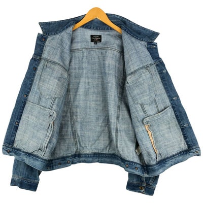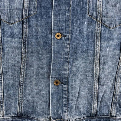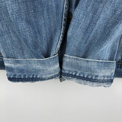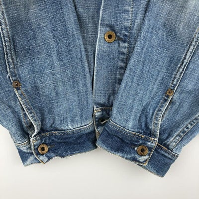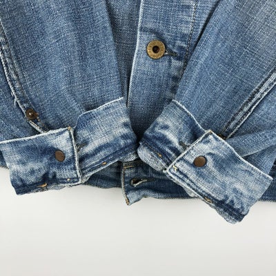USEDデニムですので使用感、擦れ、色落ちなどございますが、まだまだご愛用していただけます。 古着という事をご理解の上ご注文よろしくお願いします。 【状態追記】 ●前、腹部・両袖先に汚れ ●前、胸に擦れ ●後、両袖・両袖先に汚れ ●内、襟ぐり・両腹部・両袖先に汚れ ●内、腰に擦れ