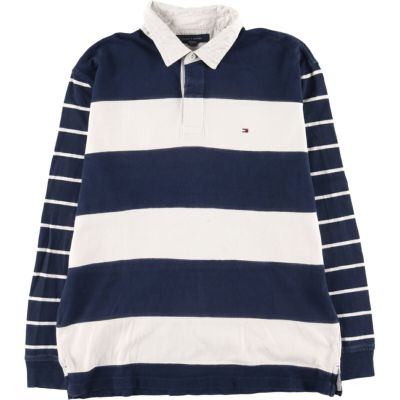 5. 古着 トミーヒルフィガー TOMMY HILFIGER ボーダー柄 長袖 ラガーシャツ フィリピン製 メンズL /eaa441382 【中古】 【240512】