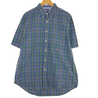 古着 90年代 トミーヒルフィガー TOMMY HILFIGER タータンチェック 半袖 ボタンダウン チェックシャツ メンズL ヴィンテージ /eaa443955 【中古】 【240513】