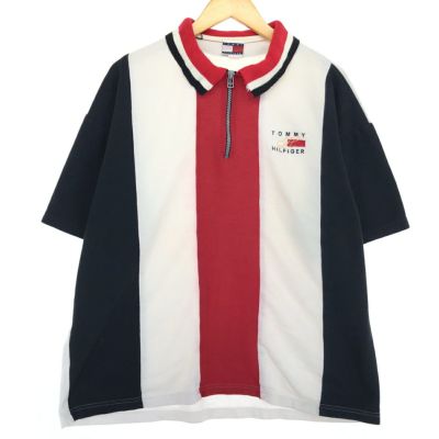 6. 古着 90年代 トミーヒルフィガー TOMMY HILFIGER ハーフジップ 半袖 ストライプ ポロシャツ メンズXL ヴィンテージ /eaa464618 【中古】 【240630】 【SS2506_30】