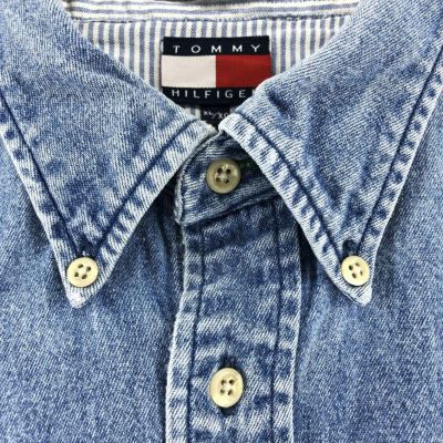 5. 古着 90~年代 トミーヒルフィガー TOMMY HILFIGER 長袖 ボタンダウンデニムシャツ メンズXL相当 /eaa531274 【中古】 【250330】
